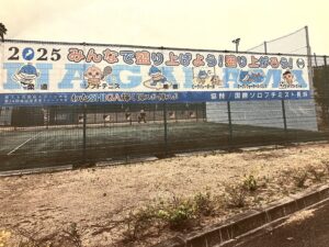 ・4月9日に開催した第12回チャリティーゴルフ大会の収益金で、「わたSHIGA輝く国スポ・障スポ」への協賛として、特大横断幕を長浜市へ贈呈させていただきました。長浜市では、5競技の正式種目が開催されます。横断幕は、長浜市民テニスコート東側の湖岸道路沿いに掲示され、啓発活動が行われいます。