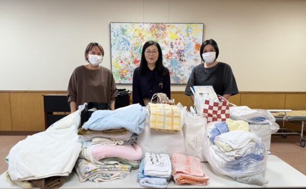 2025年11月4日私たちの近況堤 美晴 びわこ学園「えがお」さんへタオルをお届けしました10月21日の例会にて、会員が持ち寄りましたタオルやシーツ類約300点を重症心身障がい者通所施設「えがお」さんへお届けしました。大変喜んでいただけました。