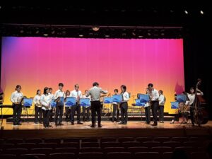 今年の演奏会は三部構成で、第一部では心躍るマーチ、第二部ではジブリの名曲を現役生が学年ごとに披露し、第三部では学園天国や倍倍FIGHT!などの有名曲が演奏されました。アンコールではマツケンサンバが響き渡り、会場は温かな拍手と笑顔に包まれました。